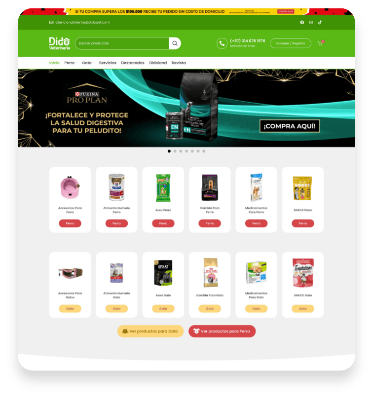Rediseñamos y optimizamos el Ecommerce de Didopet, dedicado a la venta de productos y medicamentos para mascotas. Implementando una estrategia SEO efectiva, incrementamos los clics mensuales y logramos atraer a más de 10K usuarios adicionales.