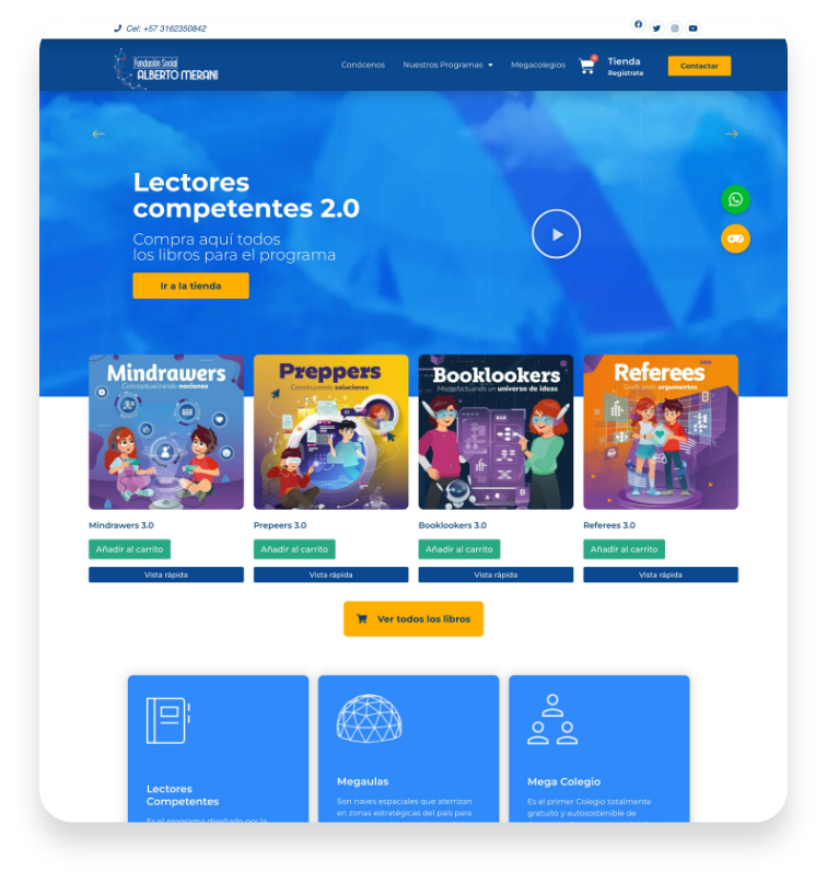 Desarrollamos la página web y eCommerce de Fundamerani, un portal educativo que facilita la compra de libros de la fundación para padres y colegios. Esta plataforma ha generado un canal de ventas más eficaz y accesible para todos.