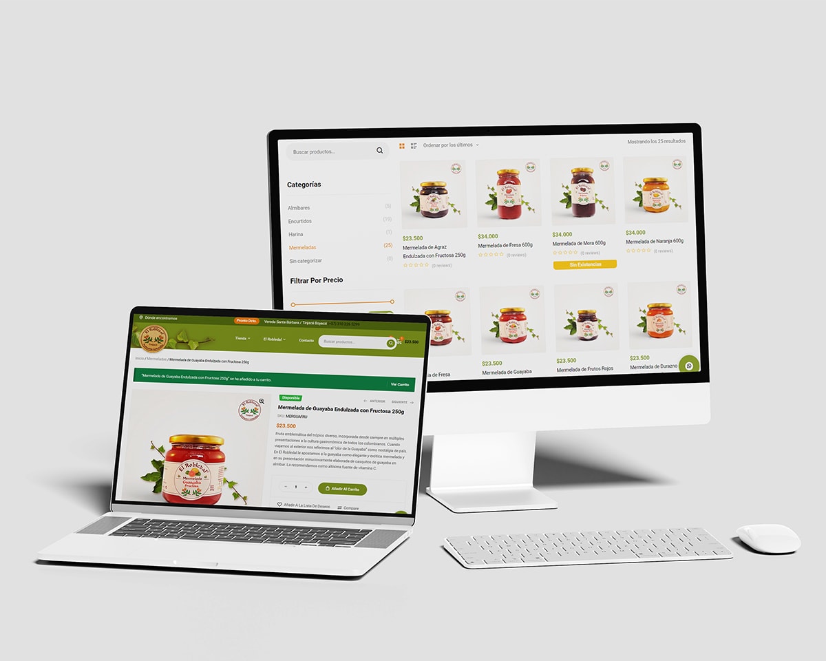 Diseñamos un sitio web que refleja más de 25 años de tradición en la elaboración artesanal de mermeladas y encurtidos. Utilizando frutas y verduras frescas del entorno, la plataforma destaca los sabores clásicos y exóticos que ofrece El Robledal, brindando a los usuarios la oportunidad de disfrutar productos sanos y naturales, ideales para acompañar momentos especiales como el desayuno, el té o una cena con vino.