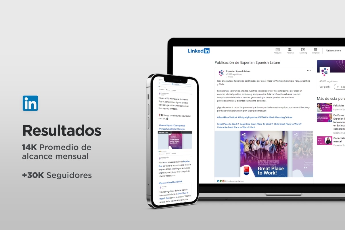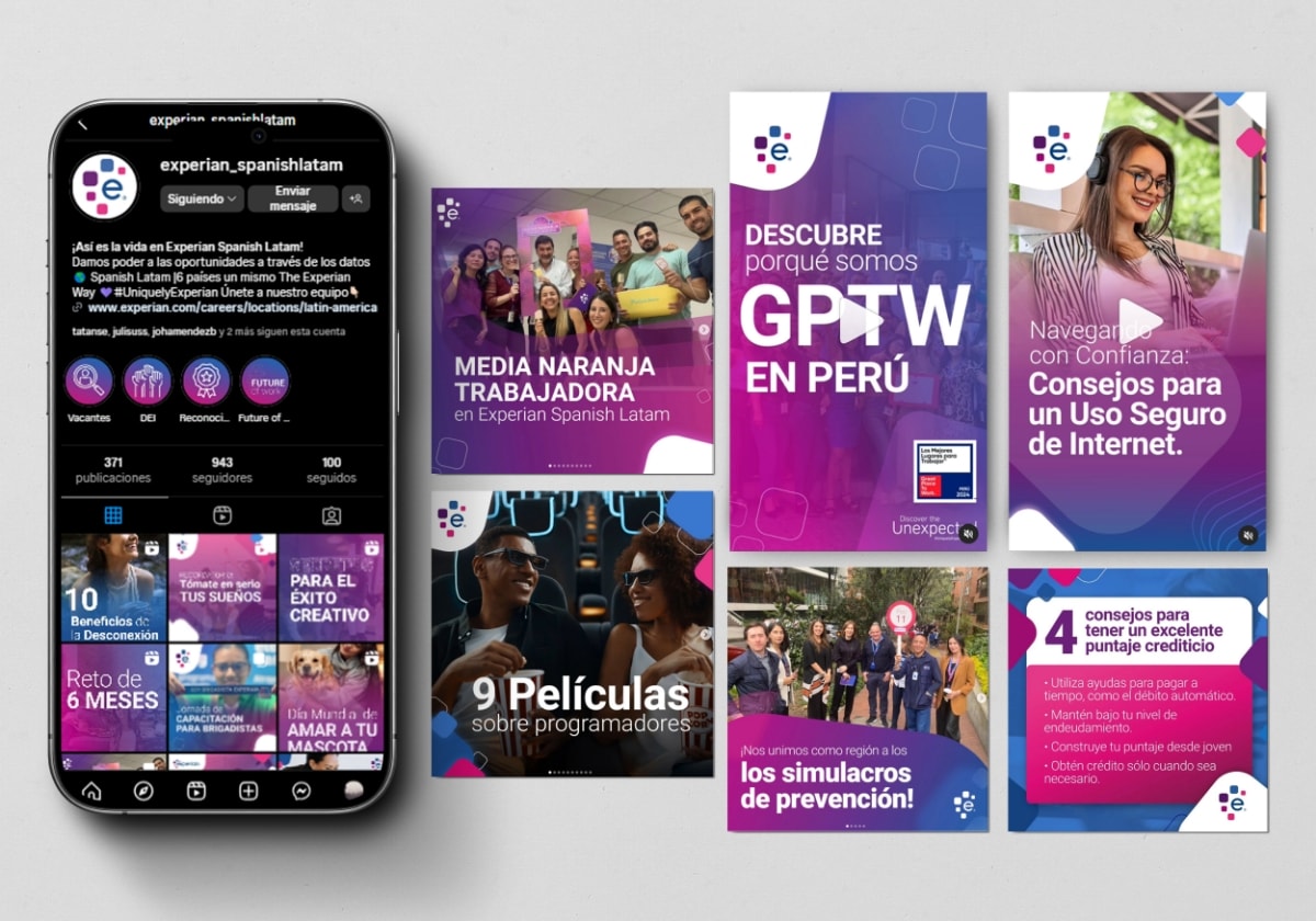 Experian Spanish Latam alcanza un promedio mensual de 14,000 usuarios y cuenta con más de 30,000 seguidores. Nuestro trabajo incluye el diseño mensual de la parrilla de redes sociales basado en métricas, diseño digital y estrategias de comunicación. Esta combinación ha fortalecido la presencia en redes sociales y aumentado la interacción con la audiencia.
